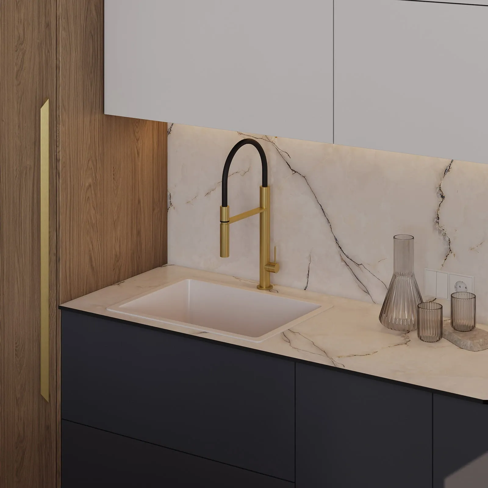 Аксессуары: Выдвижная система VS TAL Gate Pro, парящая полка (цвет профиля Черный Матовый), система для сортировки отходов AXISPACE