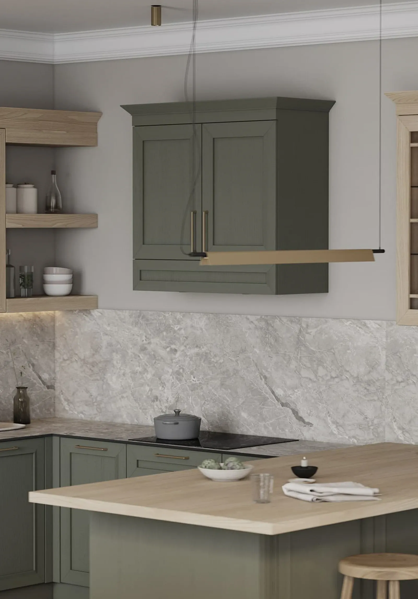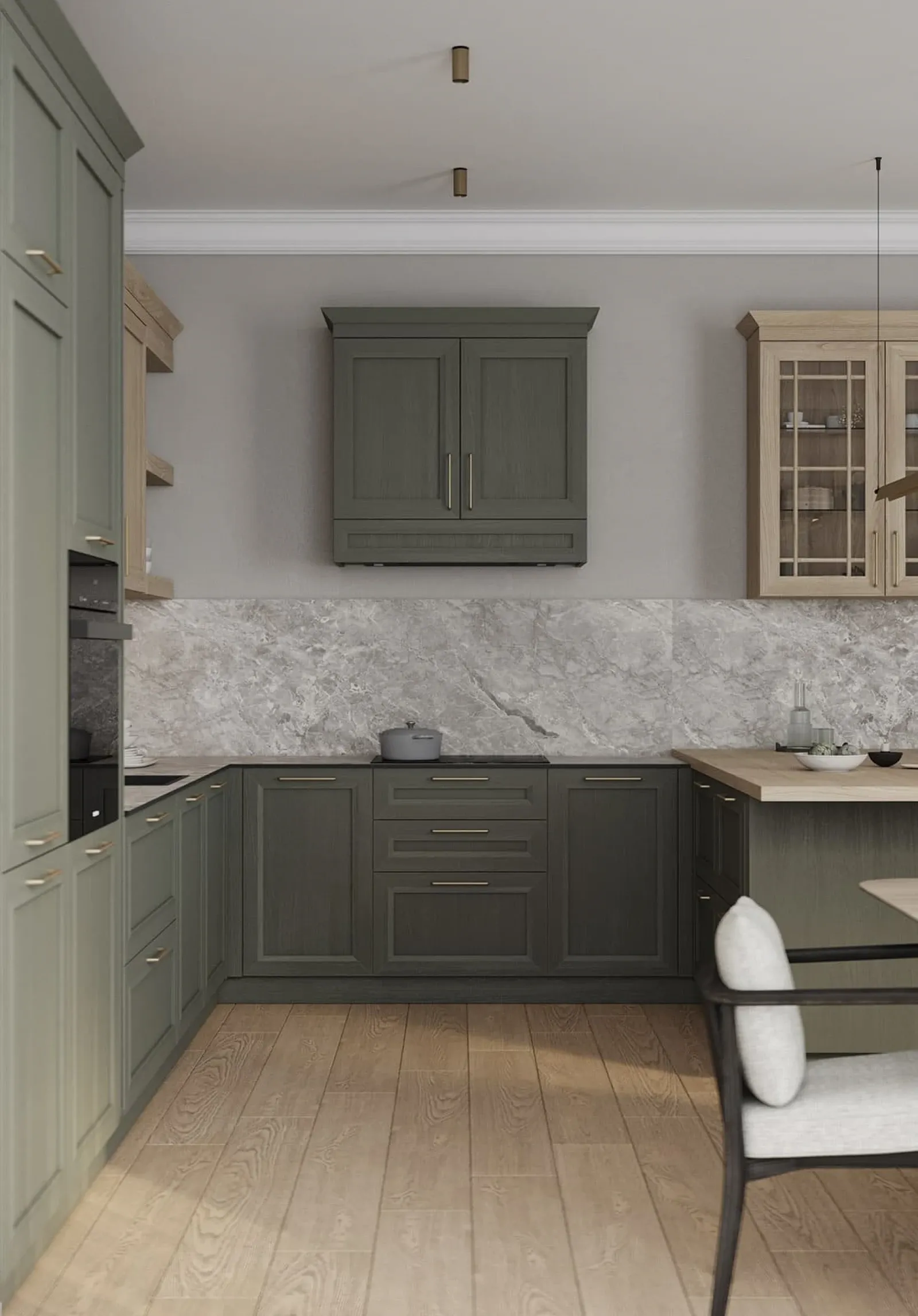 Фасады: Т763 Натуральный дуб, цвет NCS S 6010-G50Y / #183 (масловоск Бесцветный)